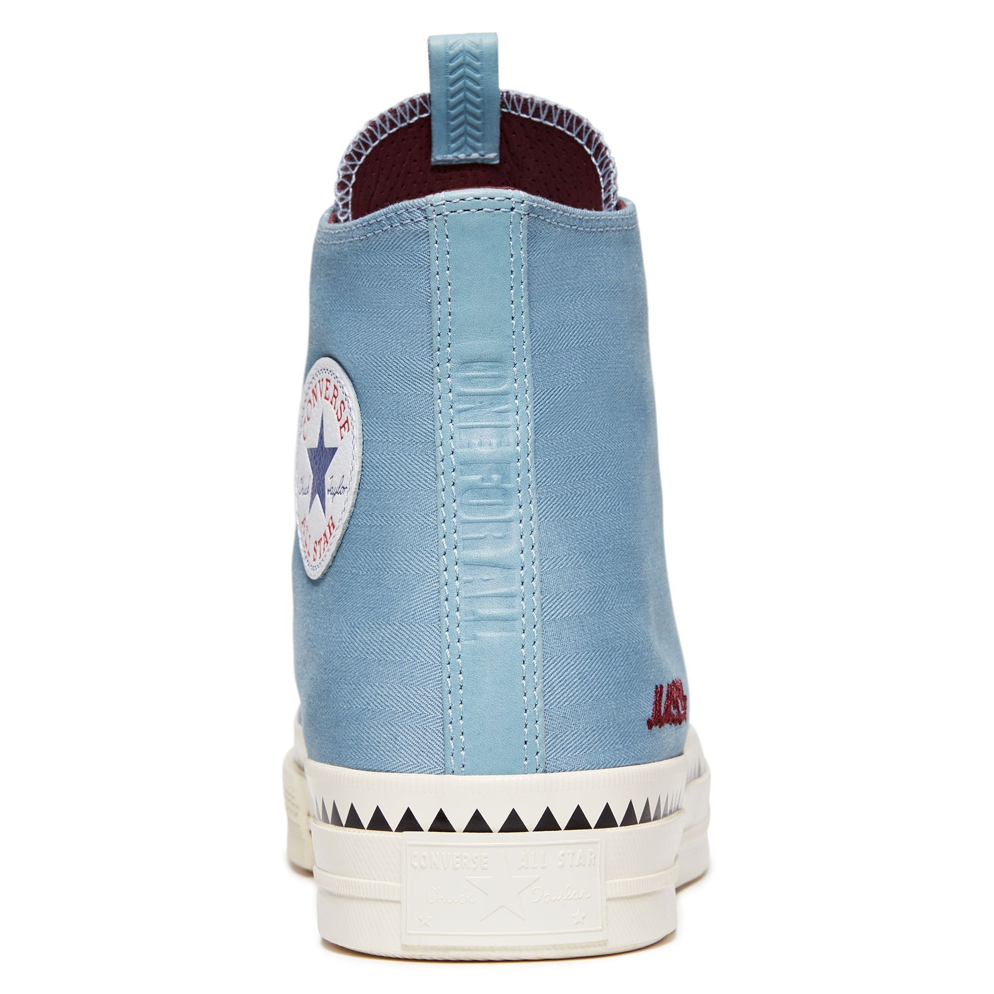 Blue Chuck 70 upper with maroon and wine Cavaliers accents